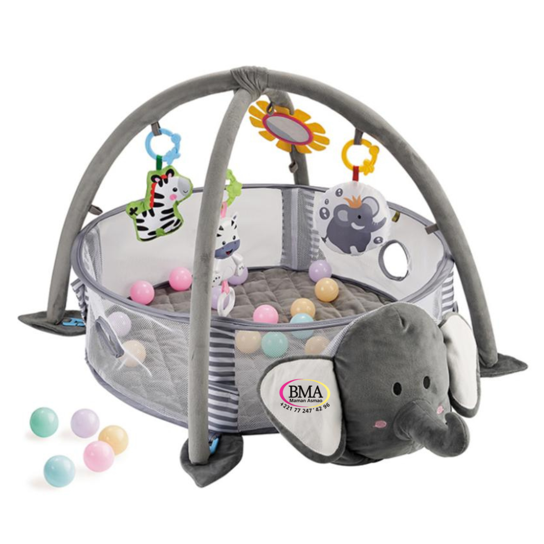 Tapis d’Éveil Activity Gym & Ball 3en1 – avec Design Éléphant